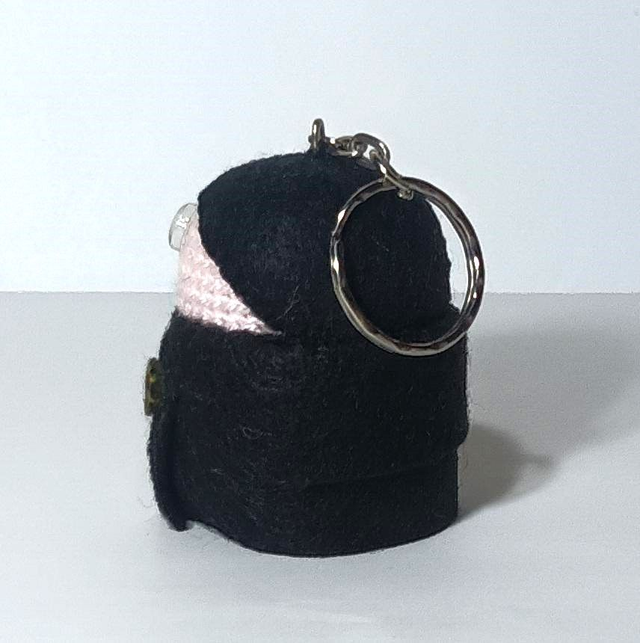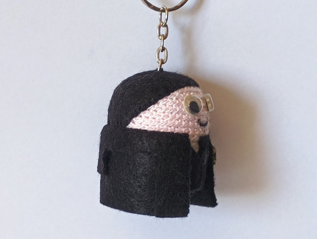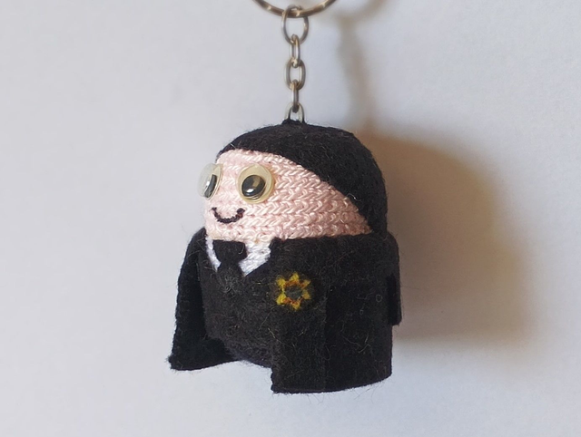 Llavero Abogado hecho a ganchillo y fieltros. Cascabel en su interior. Dimensiones: 6 x 4 cm aprox.