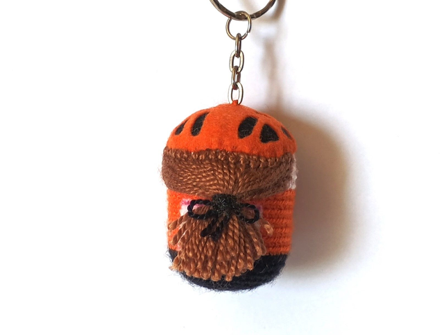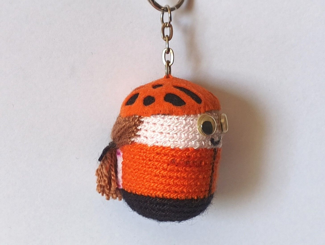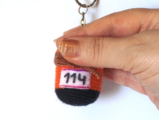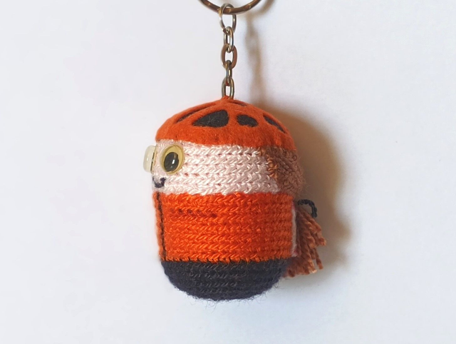 Llavero Ciclista M. hecho a ganchillo y fieltros. Cascabel en su interior. Dimensiones: 6 x 4 cm aprox.