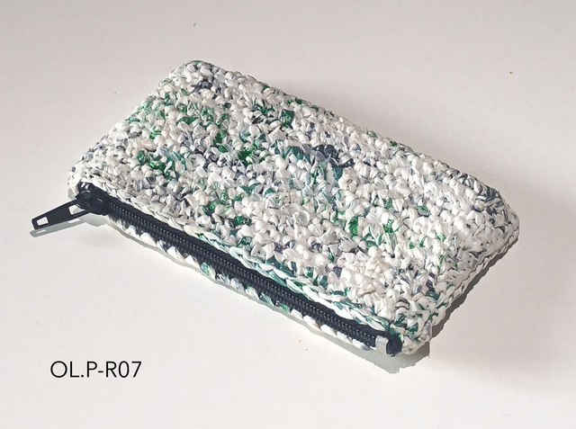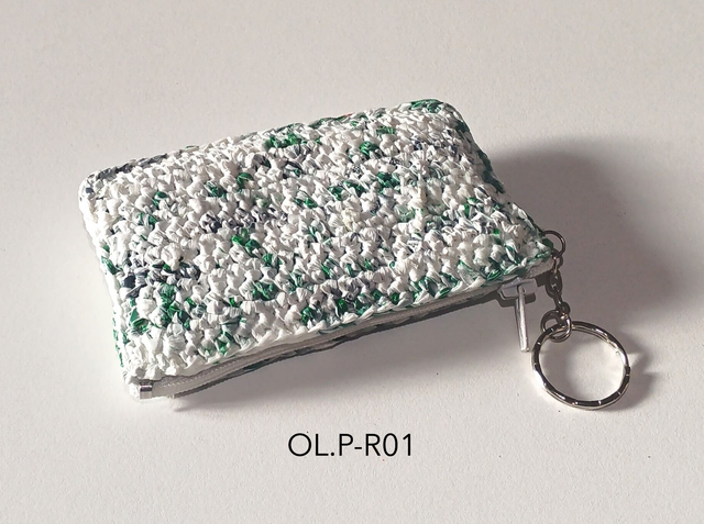 Llavero Monedero Tarjetero hecho a ganchillo con plástico. Diferentes colores para elegir. Dimensiones: 11 x 6,5 cm (aprox.)
