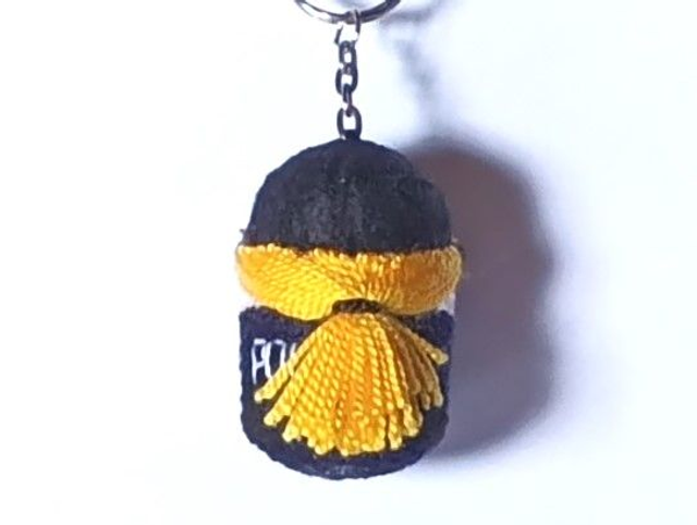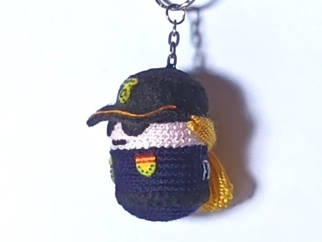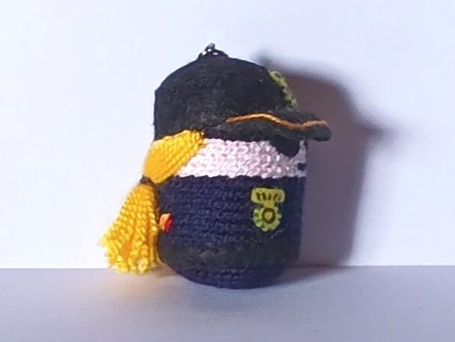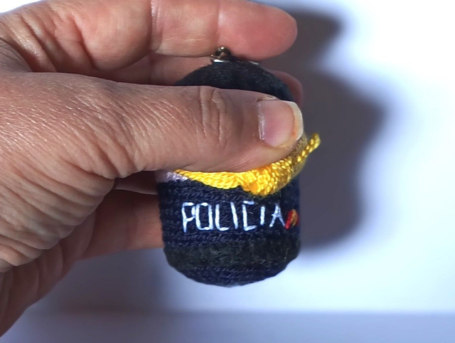 Llavero Policía Nacional M. hecho a ganchillo y fieltros. Cascabel en su interior. Dimensiones: 6 x 4 cm aprox.